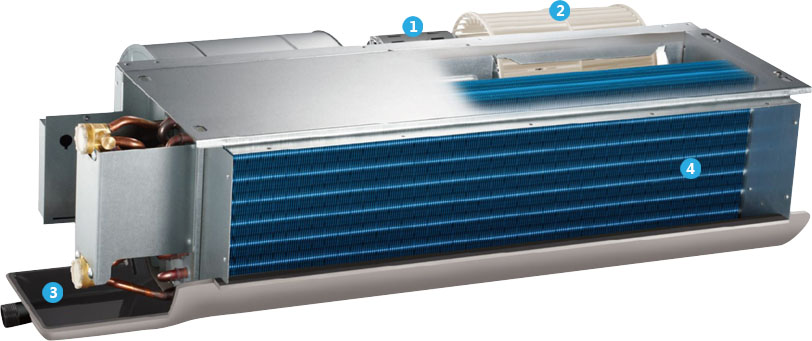 換熱效率高,翅片與銅管一起貼合,增強(qiáng)導(dǎo)熱性能,提高換熱效率 運(yùn)行寧?kù)o,采用低噪電機(jī)與大直徑離心風(fēng)輪,穩(wěn)定寧?kù)o運(yùn)轉(zhuǎn) 機(jī)身薄,薄機(jī)身 設(shè)計(jì),節(jié)省吊頂空間,靈活滿足個(gè)性化需求 控制靈活,可獨(dú)立控制各個(gè)房間